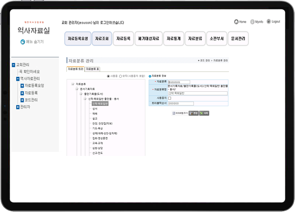 교회의 역사와 관련된 문서, 음향, 설교/영상 파일 등의 자료를 체계적으로 관리하는 프로그램 입니다.