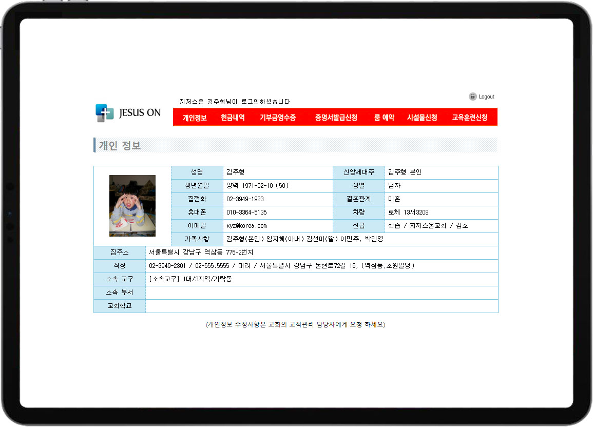 교회에서 설정한 권한 범위 내에서 내 정보를 확인 합니다.