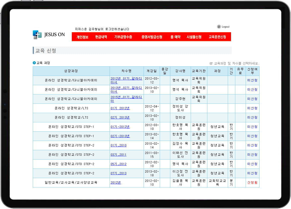 기부금영수증을 교인 본인이 직접 출력 합니다.